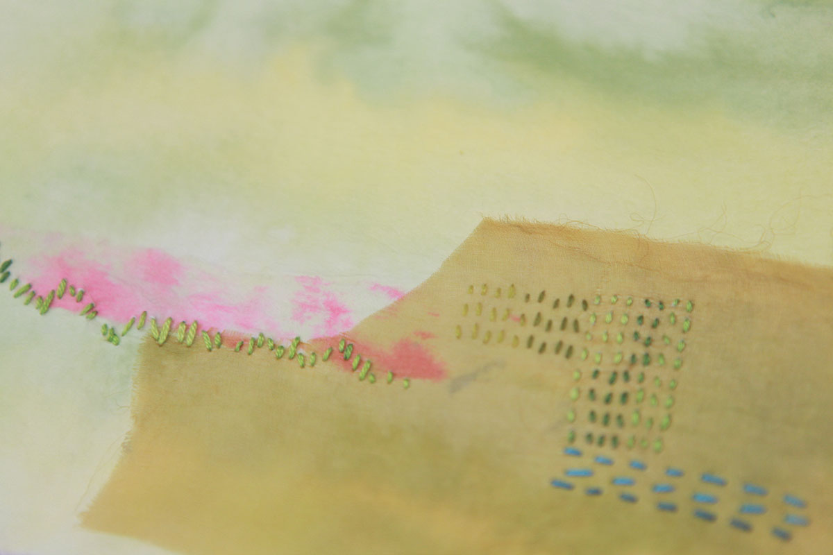 蚕丝和宣纸,染色,手缝。