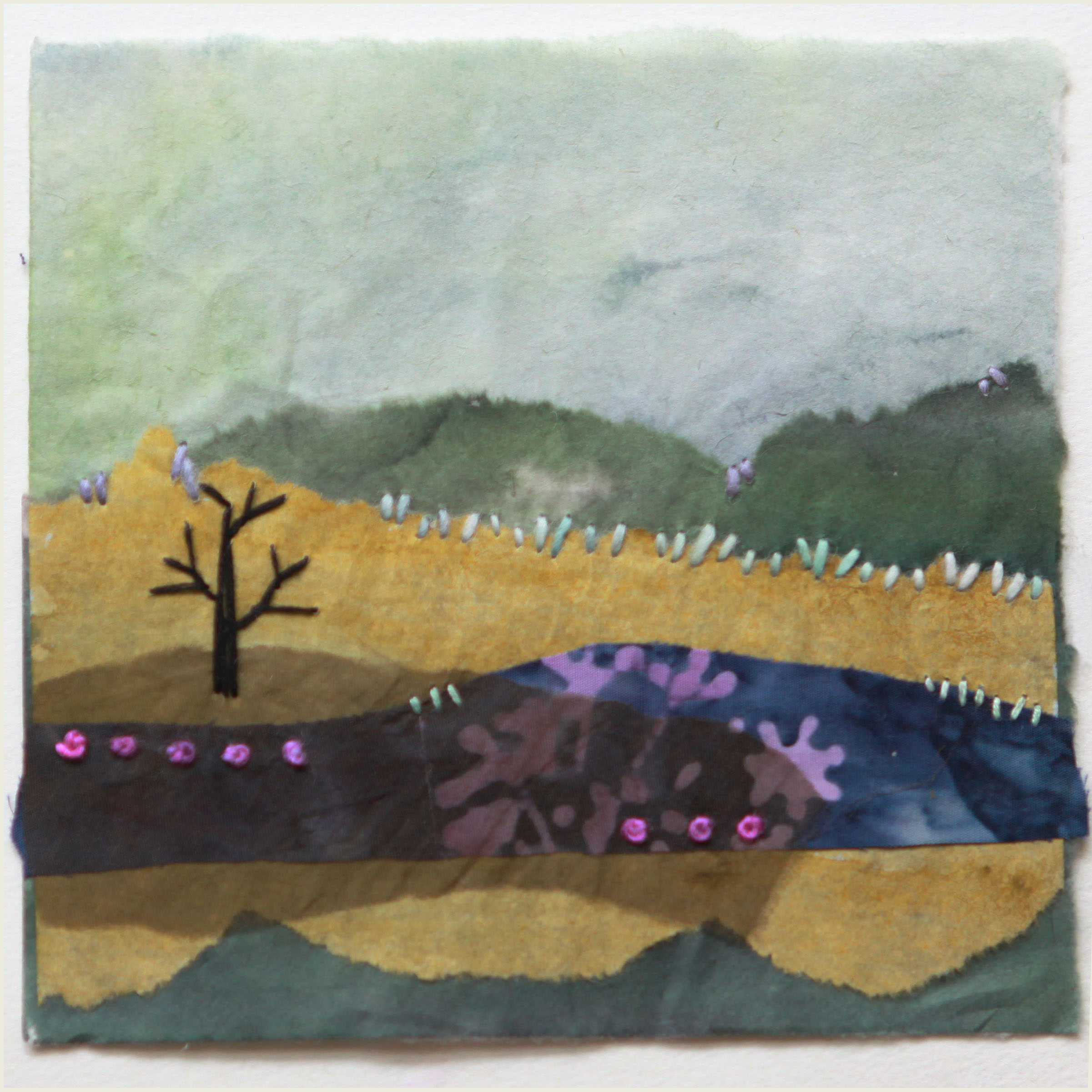 宣纸,蚕丝,棉布,手工染色的棉线和羊毛+柞蚕丝线。