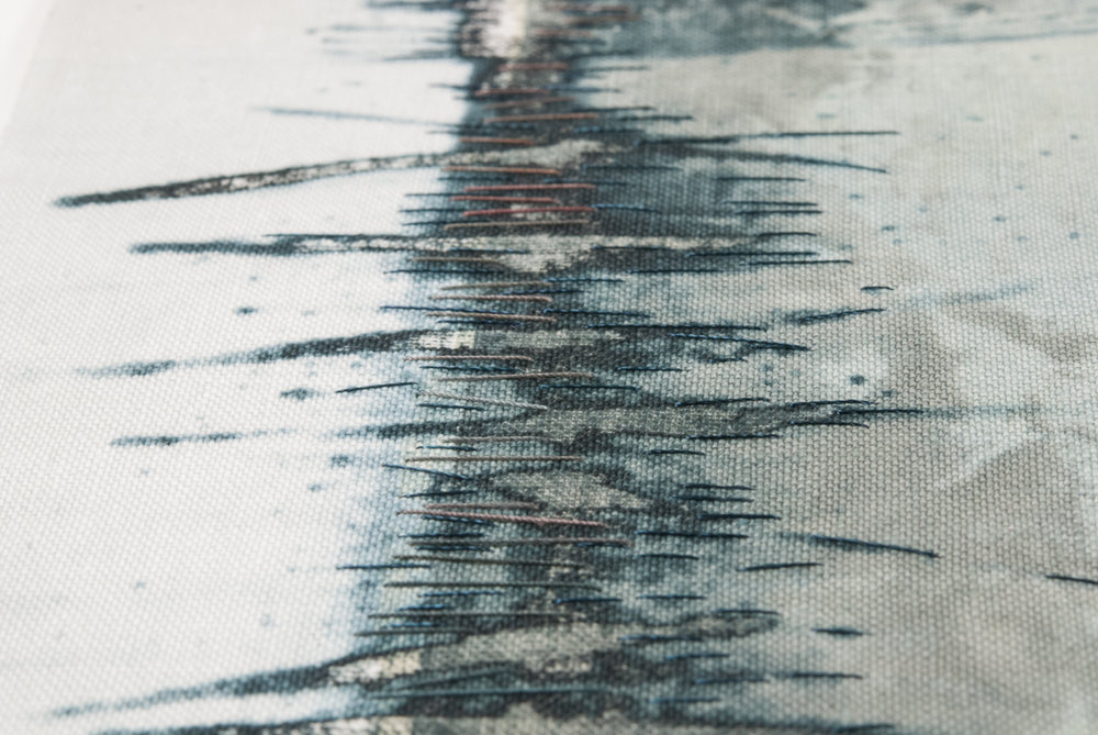 我喜欢作品的完整性,把它连在一起的针脚是可见的,是成品效果的一部分,但我也喜欢我的针脚与布上的染料痕迹一起工作(而不是对抗)。如果要有针法,就必须在布料和染料所讲述的故事中添加一些东西。一个额外的标记,纹理,线条元素,建立在已经存在的东西之上。也许通过强调或加强现有的纹理、标记(一种和谐的策略),或者通过增加对比或对位(一种补充的策略)。但除非针法成为主导特征,否则它必须与已经存在的东西整合,而不是取代。如果拼接是主要特征,那么它会把布料/染料标记推到背景中。仿佛它们变成了背景风景,而不是故事本身。在这种情况下,需要有足够的缝线-或足够强的对比-为故事的缝线是告诉阅读的背景。