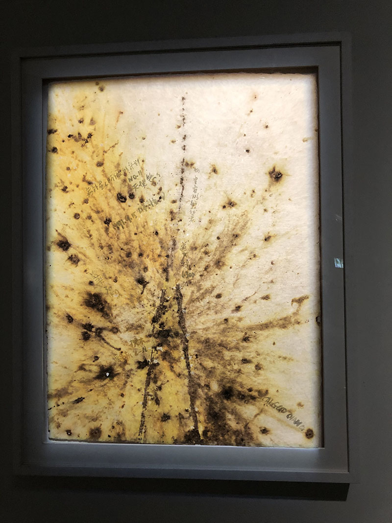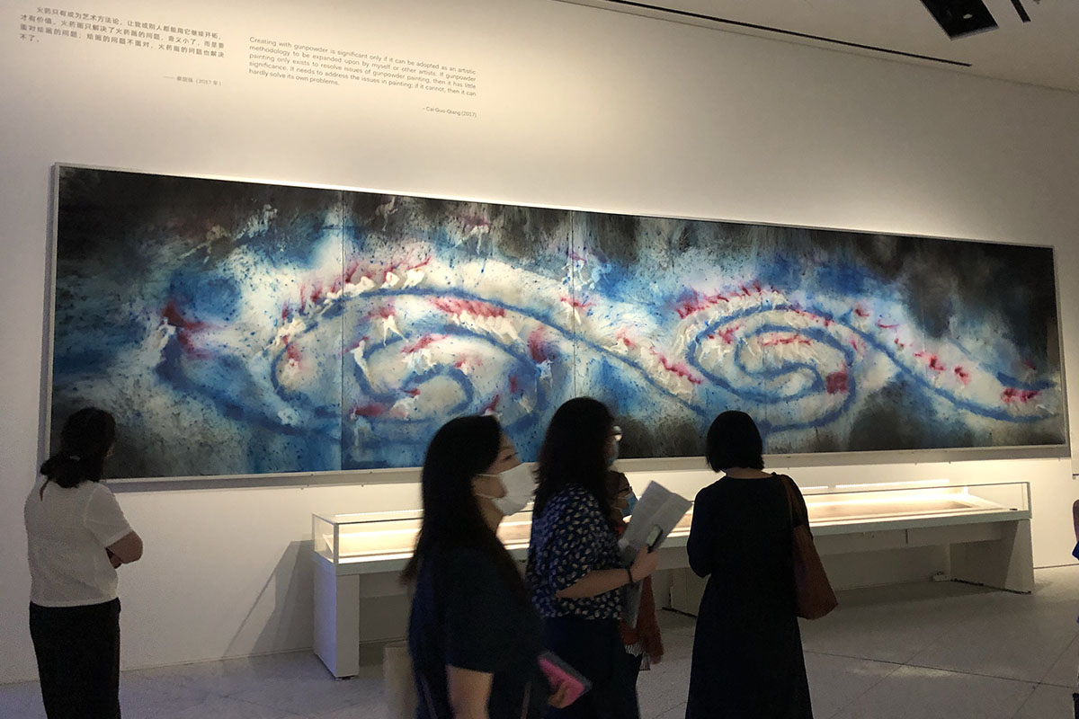 妮同学形容:“蔡国强的火药爆破艺术,极度控制下的失控,一次又一次高潮,释放出绚烂至极的生命力,自我和宇宙,均在其间。”