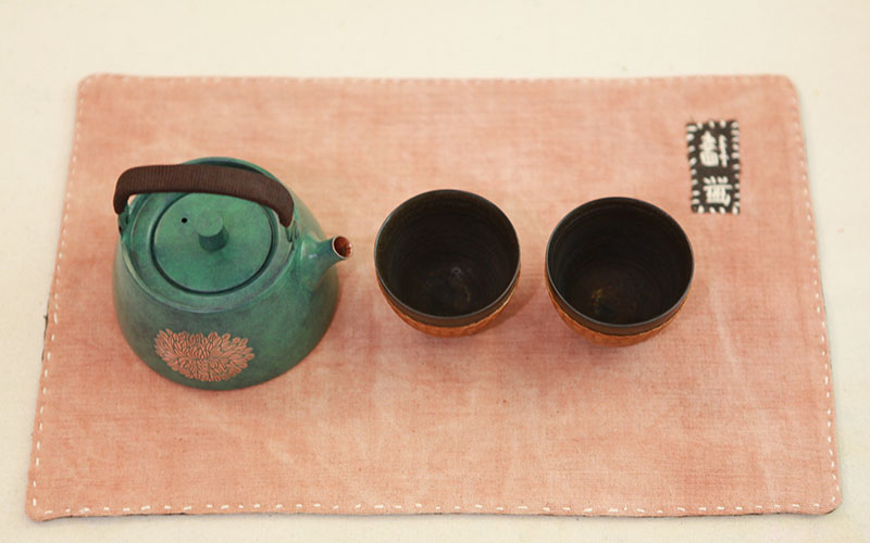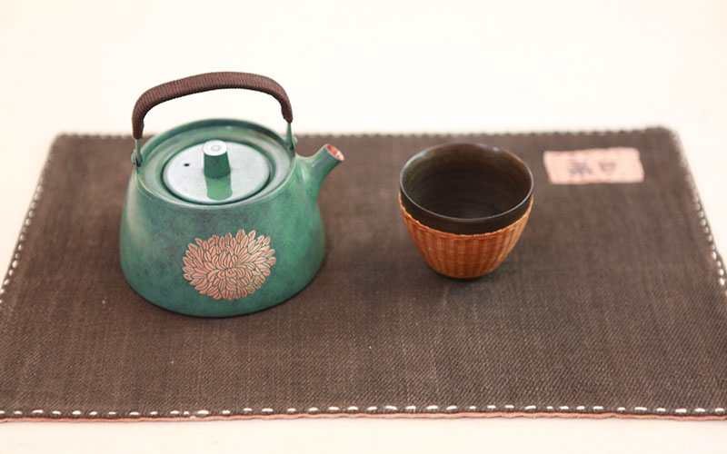今儿把茶垫缝完了。手织布,植物染色,双面,一面苎麻一面棉,厚实的。