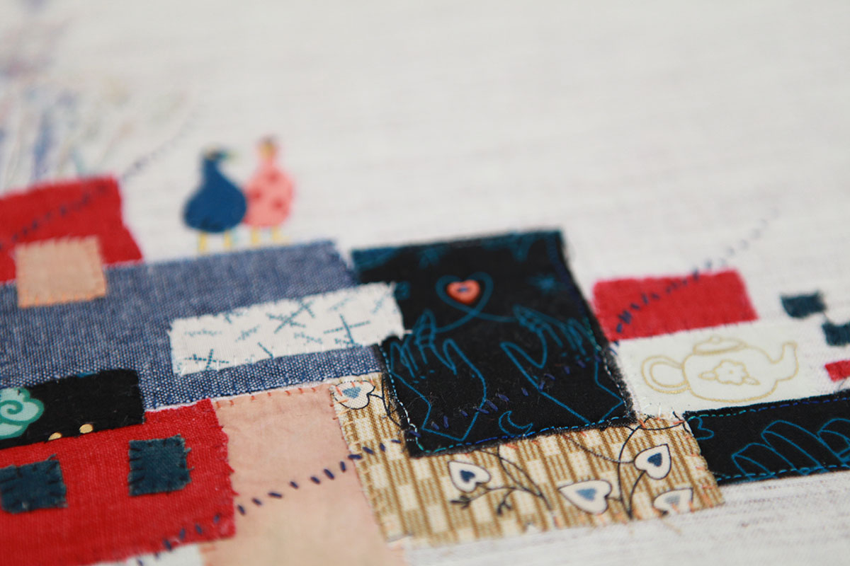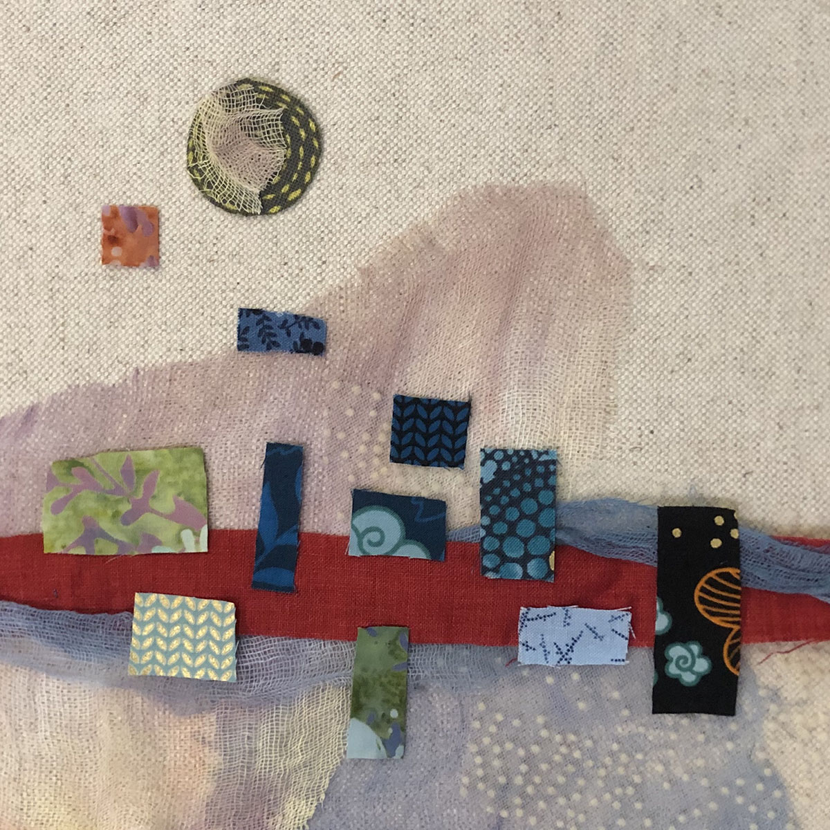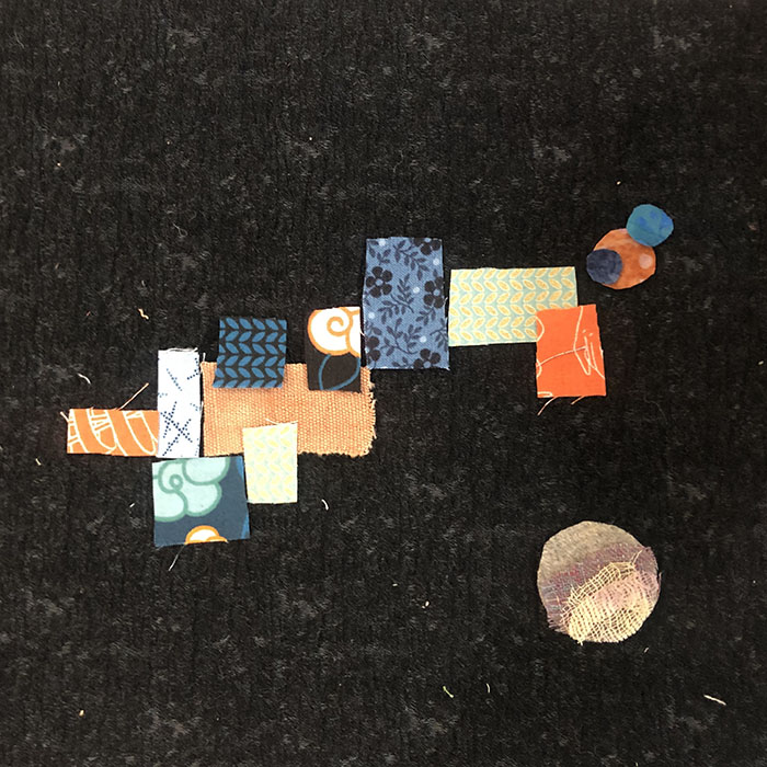 我想做一个系列,是《源启》。很多隐形的或显现的圆,很多手缝线迹,很多不明所以的素材,再被压住,整合。混乱的,整洁的。是生命之初的混沌,是宇宙本质的秩序。