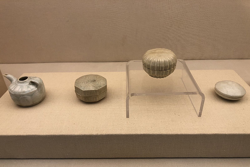 最喜爱这几个宋代的胭脂盒,淡淡的色泽,细腻的质地,小巧温润,光华内敛。还有宋代的金钗明代的玉佩,穿越千年,出现在我们面前。斯人已逝,制作者、使用者都已湮灭,灰烬里残存之物某一日却又意外地重回人间。