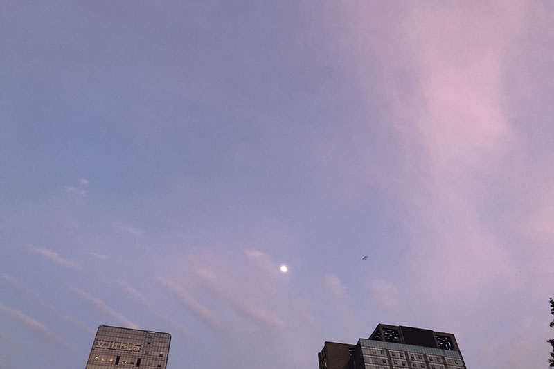 大半个月亮,圆润的样子,在天空另一侧,是农历十二。