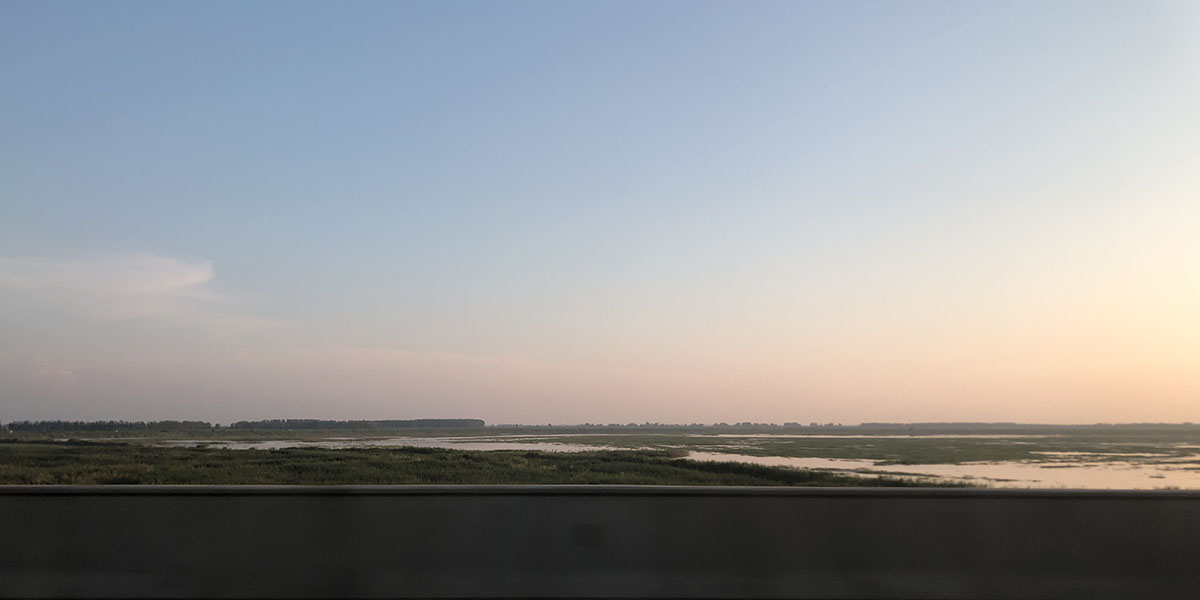 来回三千多公里,印象最深的三点:其一是体验了现实版地理书,从丘陵到平原到山地,从台风到晴朗到山雨。其二是山城还是比较震撼的,整座整座山都被房子造满,未来科技感加魔幻。其三是平原我太爱了,从鄱阳湖至宜昌这一段,特别是仙桃、洪湖这一带,水泽交错,层次丰富,我被完全击中了,在高速上拍的照片,视角是平的,挤压在一起,体现不出我当时在现场心中被击中的感觉。