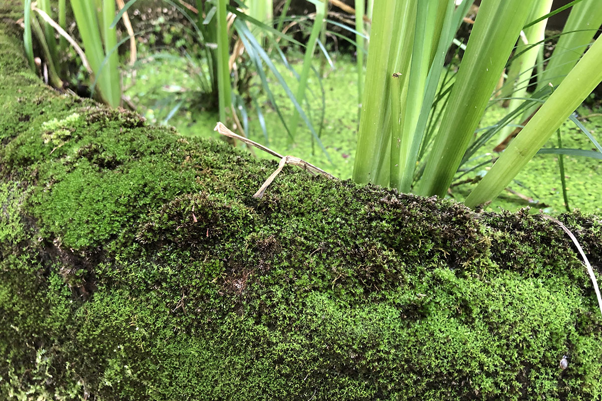 路上遇见一个石臼,里面种着的是茭白?水面上一层浮萍,外面长满青苔,青苔上爬着一只蜗牛。绿意蓬勃,生机盎然,煞是可爱。