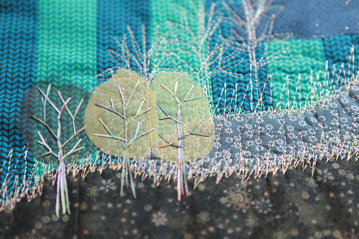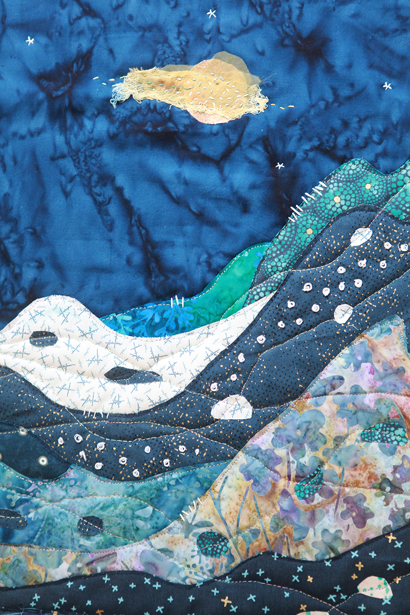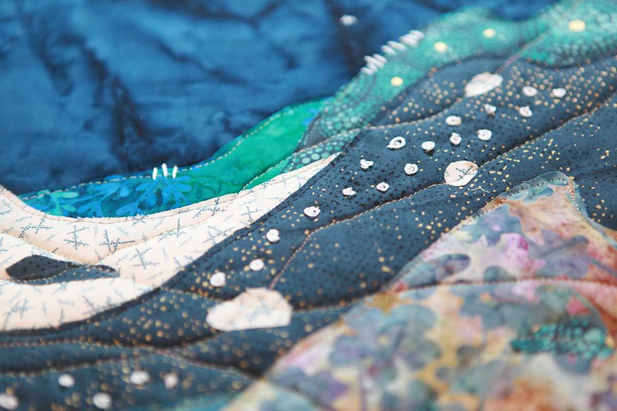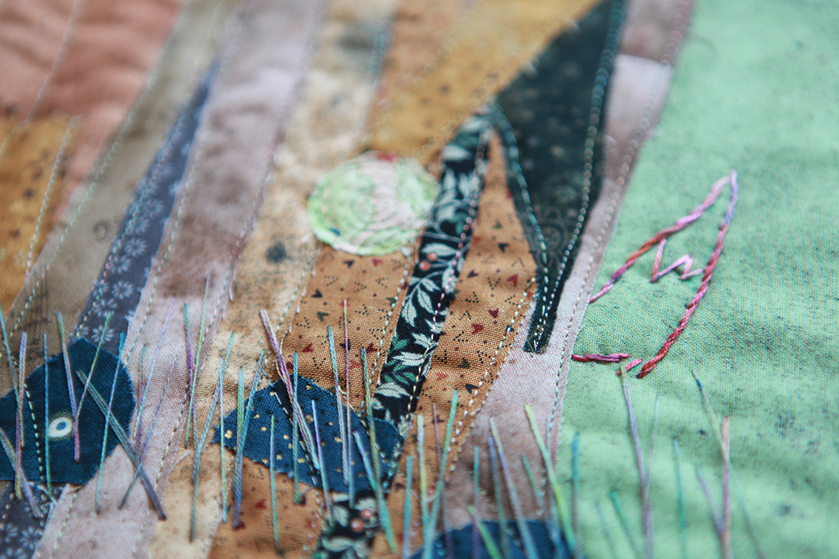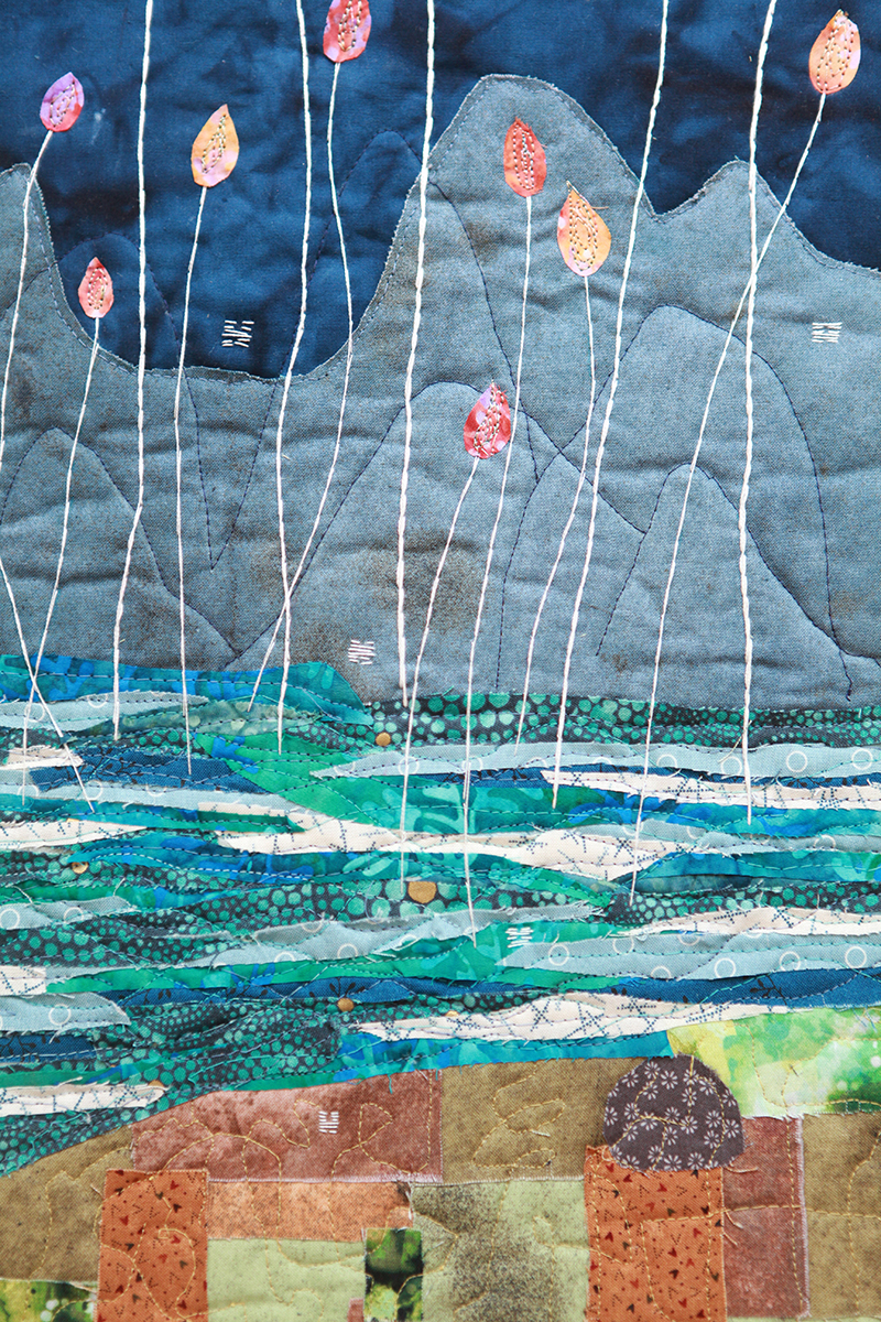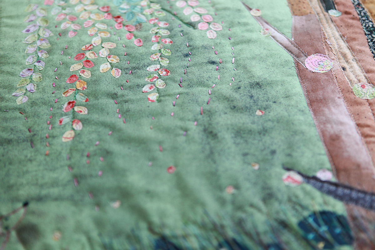 本组作品主要以拼布绗缝工艺完成,机缝,手缝,贴布。